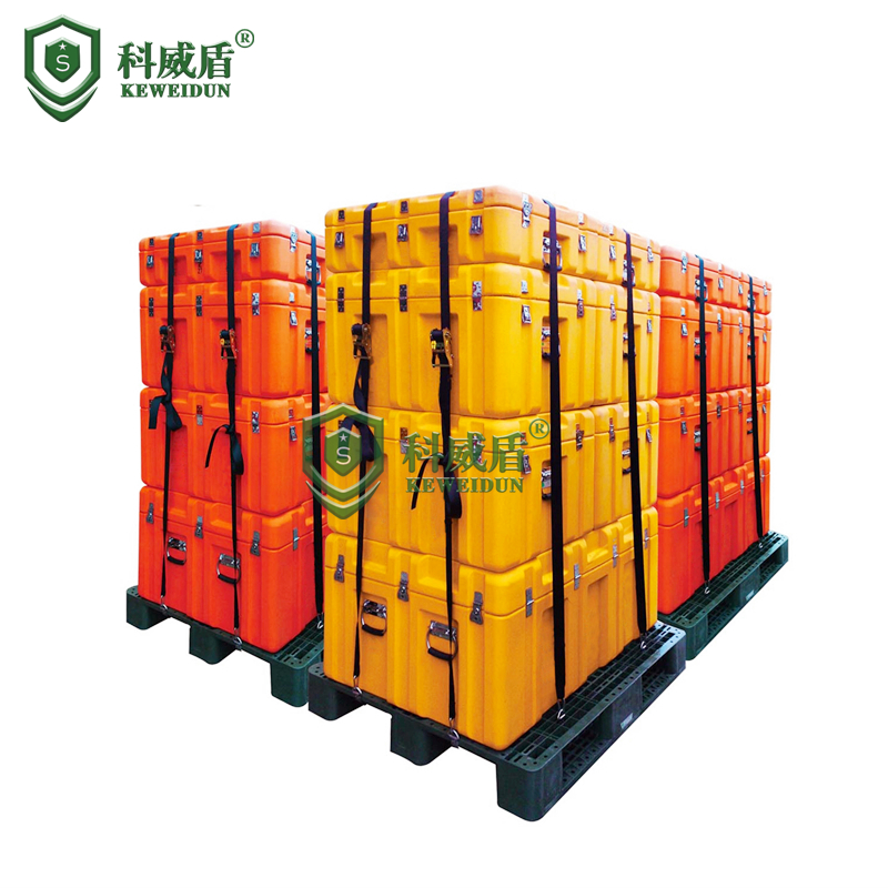 科威盾模塊化物資裝備箱組系列采用滾塑模具成型,可采用任何組合碼垛捆綁于托盤上,由高強(qiáng)度綁帶固定,便于包裝、運(yùn)輸、儲存應(yīng)急儲運(yùn)裝備器材。托盤可叉裝、吊裝,承載能力強(qiáng),便于包裝箱的機(jī)械運(yùn)輸、轉(zhuǎn)運(yùn)等。